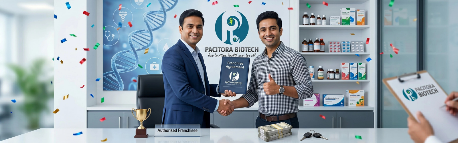 Pacitora Biotech invites you to join our expanding network through our PCD Pharma Franchise program, crafted to offer aspiring entrepreneurs a profitable and sustainable business opportunity. We provide a diverse portfolio of high-quality pharmaceutical products — including tablets, capsules, syrups, injectables, ointments, and more — all manufactured in state-of-the-art, WHO-GMP-certified facilities. As a franchise partner, you’ll gain access to exclusive monopoly rights, transparent business practices, reliable product deliveries, and a comprehensive suite of promotional tools, such as visual aids, product samples, and marketing materials. Whether you’re an individual or an established business, Pacitora Biotech equips you with everything you need to excel in the dynamic pharmaceutical market. Partner with us and take your first step toward building a thriving and rewarding business with Pacitora Biotech.